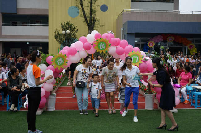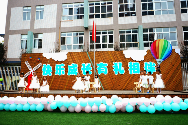 本学期,温江区光华实验幼儿园将“少年传承中华传统美德”作为德育主题,围绕“礼”的育人目标,确立了“快乐成长、有礼相伴”这一开学典礼主题,通过多种形式让孩子们感受礼仪、礼貌、仪式,树立和传承中华传统美德。活动在主持人温暖的问候声中拉开帷幕。各班教师引领着孩子们通过“成长门”,这是孩子们迎来新学期的第一个“礼”——成长礼。新入园的幼儿在爸爸妈妈的陪同下,手拉着手,快乐地踏过此门,预示着他们正式成为光华实验幼儿园的小朋友,也开启了他们校园生活的第一步。其他班的孩子通过此门,用微笑向爸爸妈妈宣告、向老师宣告、向同伴宣告、向自己宣告:我已长大!看着穿过“成长门”的孩子们,班级的老师也一一为孩子们送上了新学期的祝福。