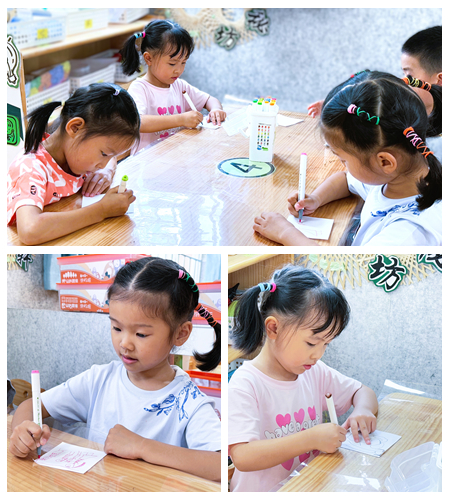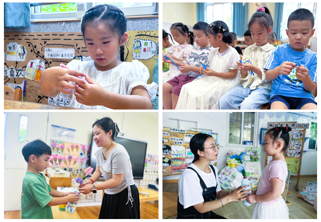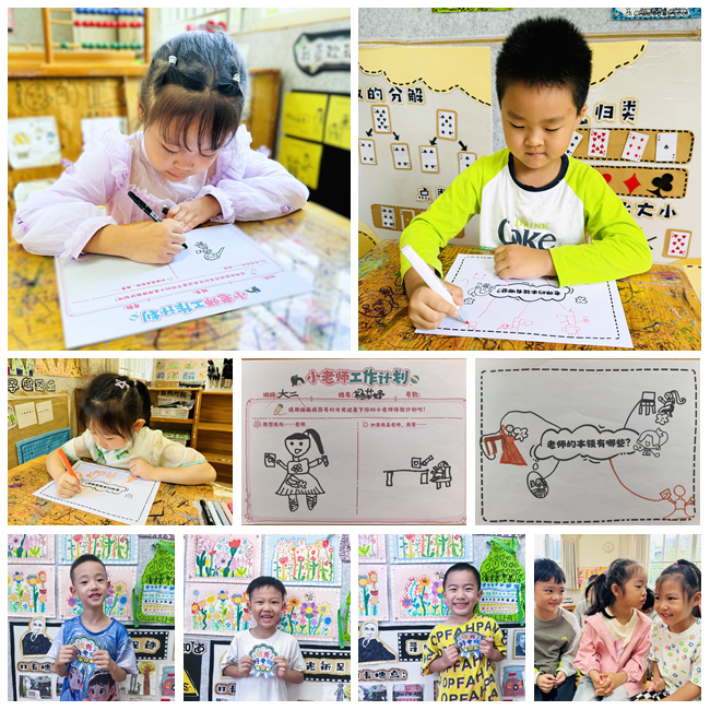 大班的孩子们化身小小创作者,用巧手制作礼物,用体验理解感恩。孩子们拿起画笔绘制“我心中的老师”,一幅幅画作充满童趣与真情,传递着温暖与敬意。有的孩子精心制作了蝴蝶兰贺卡,将感恩融入一笔一画之中;有的孩子用扭扭棒制作花束,做成一束束永不凋零的花;还有的孩子参与“小老师上岗记”活动,通过亲身体验,感受老师的辛劳。