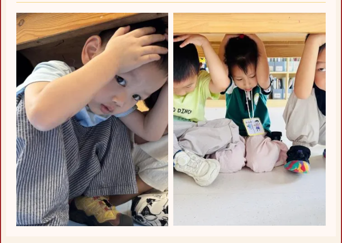 上午10:00,随着“预先警报”信号的响起,演练正式拉开序幕。各班教师立即停止一切活动,迅速组织幼儿在教室内进行就近隐蔽,指导幼儿蜷缩身体、降低重心、保护头部,躲在坚固的桌下或墙角等安全区域。