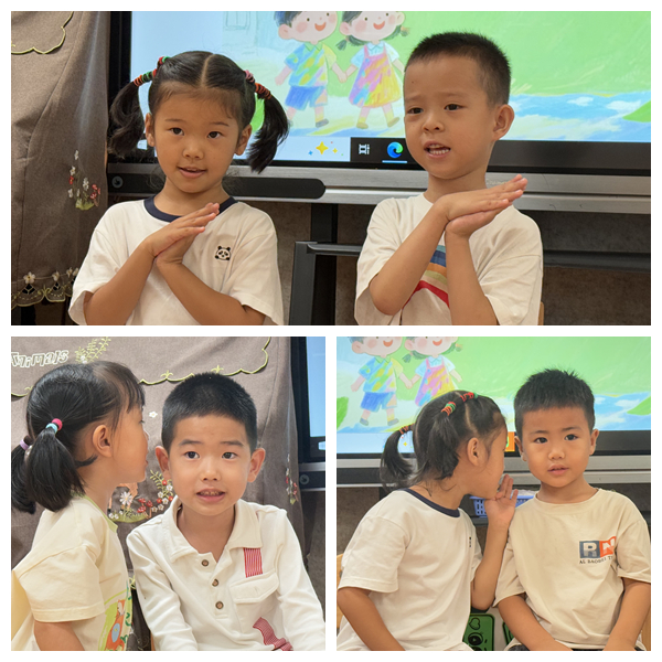 在感知基础之上,以“游戏练普”引导幼儿主动表达。开展“普通话儿歌接龙”游戏,幼儿们分成小组,以接句的形式互动。趣味十足的互动不仅让幼儿熟练运用已学儿歌,更在同伴合作中增强了说普通话的自信心,有效提升了语言表达的流畅度。