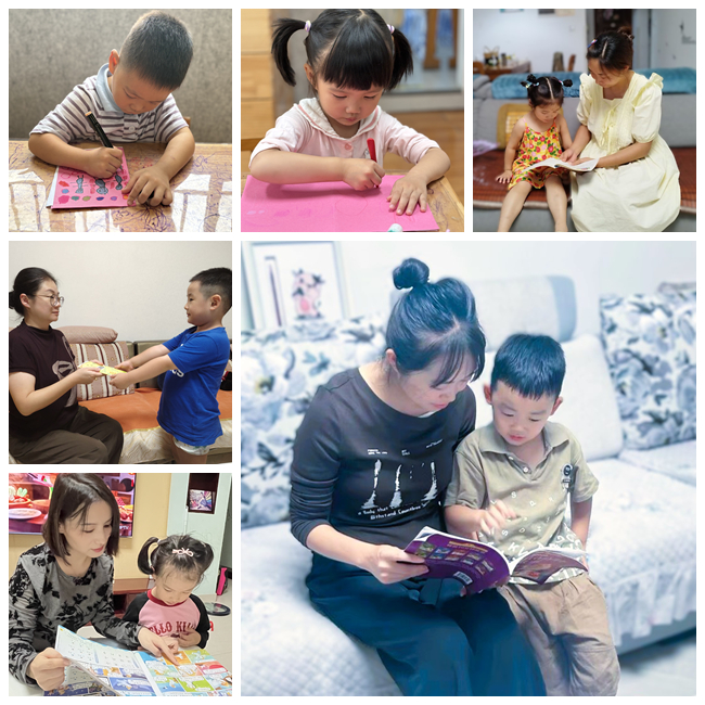 为延伸学习场景,以“家园拓展”搭建共育桥梁。通过幼儿设计的普通话倡议书,同步推荐《扮家家》《熊猫日记》等适合幼儿的儿歌、绘本资源,鼓励家长与孩子开展亲子共读。在家长的陪伴下,幼儿用普通话复述儿歌、故事等内容,让普通话学习从幼儿园延伸至家庭,形成“家园共学”的良好氛围。