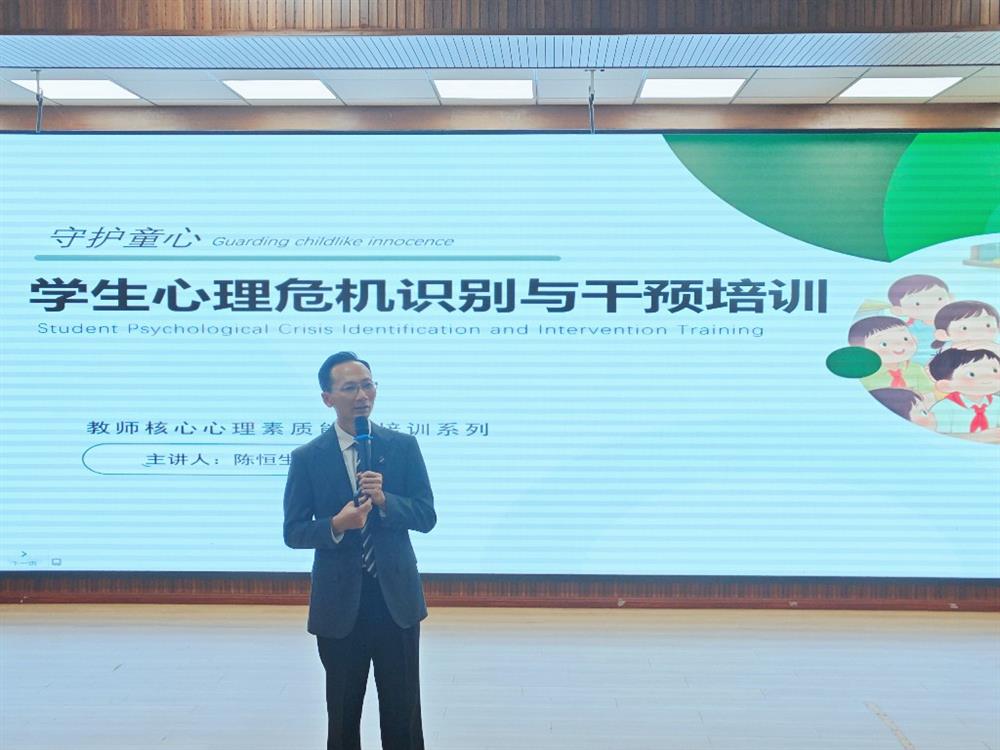 为进一步加强学生心理健康教育工作,提升教师对学生心理危机的识别与干预能力,筑牢校园心理安全防线,温江区东大街第一小学校联合四川光华社会工作服务中心,特邀中国科学院心理研究所陈恒生博士,为全体教师开展了“学生心理危机识别与干预”专题培训。