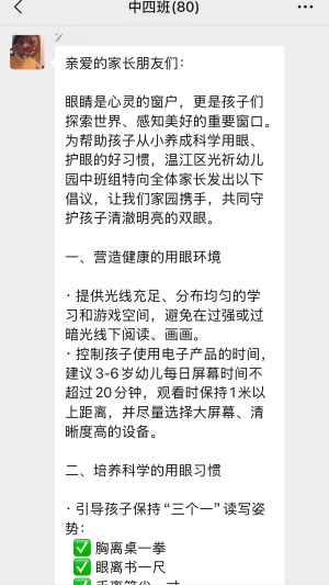 幼儿园还通过发布《爱眼护眼倡议书》,积极引导家长掌握科学护眼方法,联结家园力量,共同为幼儿的视力健康构筑坚实防护墙。