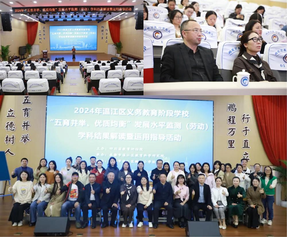 为深入贯彻 “五育并举” 教育方针,推动温江区义务教育阶段劳动教育高质量发展,2025年10 月 22 日下午,由四川省教育评估院主办,成都市温江区教育科学研究院承办,成都市温江区鹏程小学校协办的“2024 年温江区义务教育阶段学校‘五育并举、优质均衡’发展水平监测(劳动)学科解读暨运用指导活动” 在鹏程小学校成功举办。