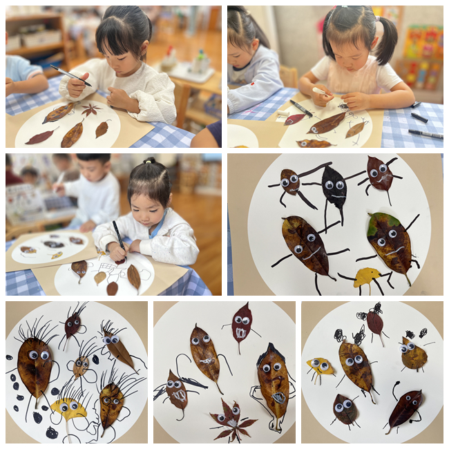 欣赏完落叶精灵的舞姿,孩子们跃跃欲试,想要亲自为它们设计动作。接下来,倾衍妈妈为每位孩子准备了落叶和装饰材料。孩子们小心翼翼地拿起画笔,为落叶画上灵巧的四肢,贴上炯炯有神的大眼睛。顷刻间,一片片普通的落叶在孩子们手中被赋予了独特的个性与生命,变成了正在跳跃、嬉戏的“奇妙落叶”。
