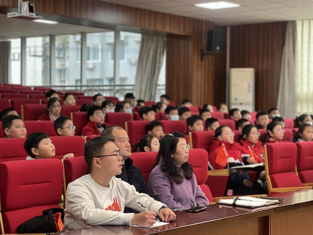 此次活动,学校特别邀请到城市共享教师何雄老师走进东一校园。活动现场,学校行政代表与五年级110余名师生齐聚一堂,共同聆听这场充满力量与感动的讲座。同学们满怀期待,眼神中闪烁着对知识的渴望和对英雄精神的向往。