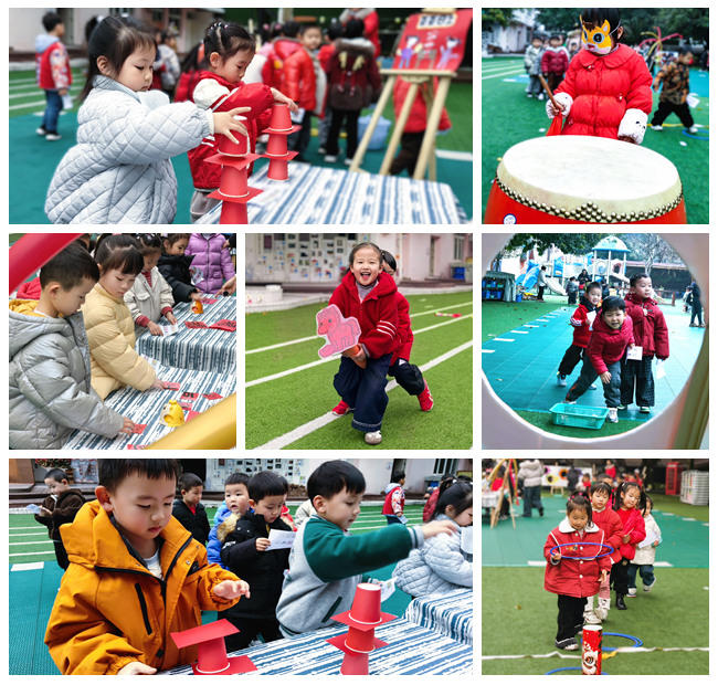 中班四个班级联袂打造“欢乐广场”运动游戏区,一场热闹非凡的游园会欢乐启幕,孩子们穿梭其间、尽情嬉戏,在趣味游戏中讨彩头、送祝福,把新年的喜悦传遍校园每个角落。